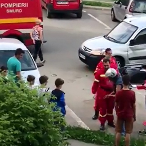 Un echipaj SMURD a intervenit şi a acordat primul ajutor bărbatului rănit, din fericire uşor. Acesta purta casca de protecţie în momentul producerii accidentului.