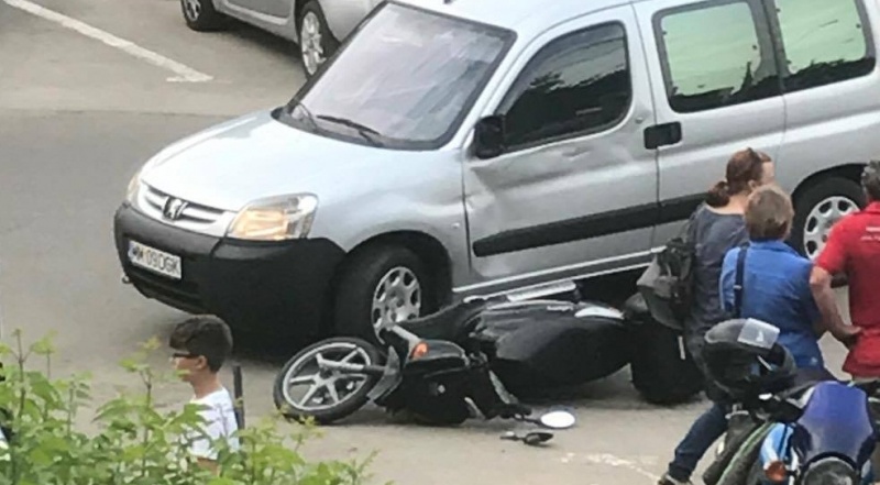 Un mopedist se afla în depăşirea autoturismului nu a mai reuşit să evite impactul şi s-a lovit de autoturism. Bărbatul de pe scuter a căzut pe carosabil.