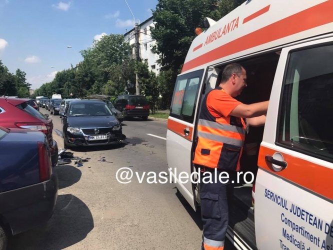 In urma impactului cele doua vehicul au fost avariate, iar soferita a fost ranita.