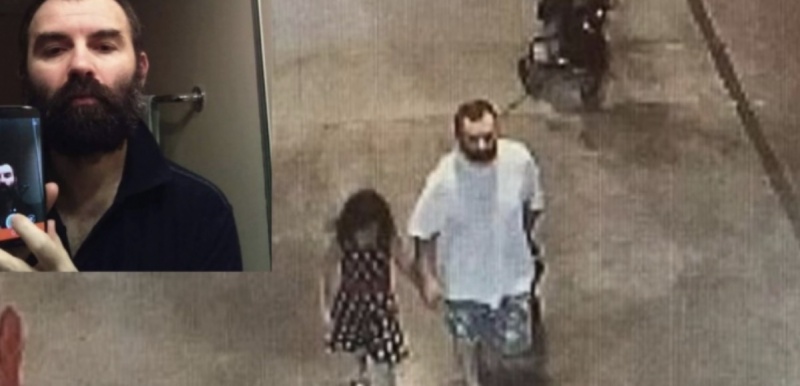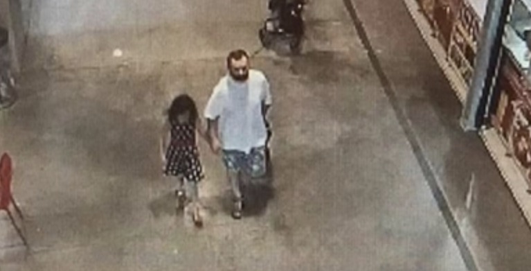 În imaginile suprinse de camerele de supraveghere se vede cum micuţa îl ia de mână pe român şi împreună pleacă într-o direcţie necunoscută.