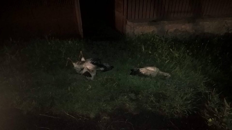 Patru pui de barză aflaţi în cuib au murit carbonizaţi. Sătenii spun că totul s-a petrecut sub privirile altor berze care se zburau cu disperare pe lângă stâlpul în flăcări.