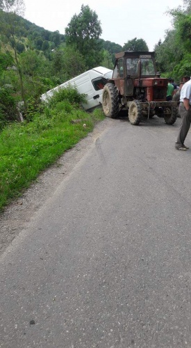 Se pare că şoferul autoutilitarei înmatriculate în Vrancea şi plină cu legume şi pepeni verzi, aproximativ trei tone, circula spre Poienile de Sub Munte.