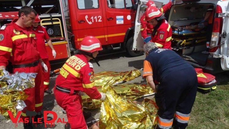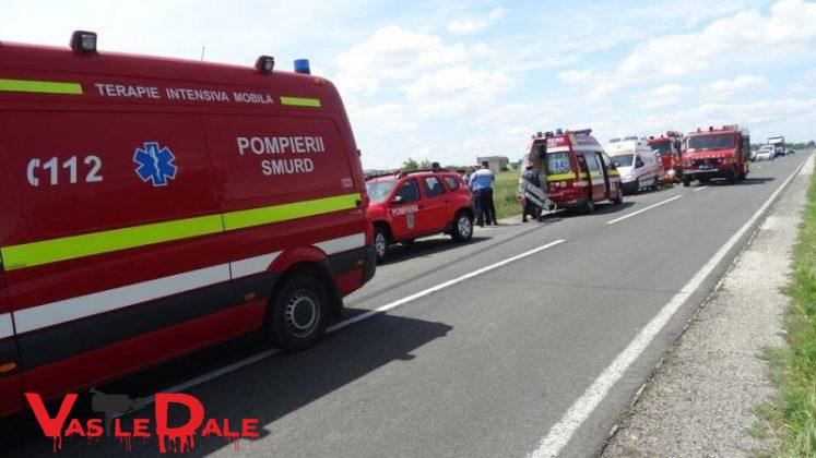 Personalul sosit la faţa locului, după efectuarea recunoaşterii, a constatat că, în urma coliziunii a două autoturisme, au rezultat cinci victime dintre care trei persoane încarcerate între fiarele contorsionate ale maşinii. Victimele încarcerate au fost extrase din autoturism, însă prezentau lenziuni incompatibile cu viaţa, personalul medical fiind nevoit să le declare decedate. Din nefericire, un copil în vârstă de aproximativ cinci ani, care se afla în stop cardio respirator la momentul sosirii pompierilor, în ciuda efectuării manevrelor de resuscitare de către personalul specializat, nu a supravieţuit. Pompierii, paramedicii şi personalul medical au intervenit şi pentru acordarea primului ajutor medical celeilalte victime, aceasta, ulterior fiind transportată la Unitatea de Primiri Urgenţe Satu Mare. (foto: ISU Satu Mare)