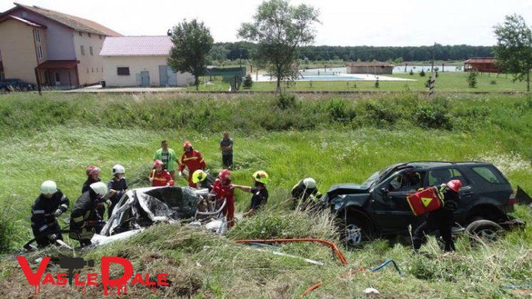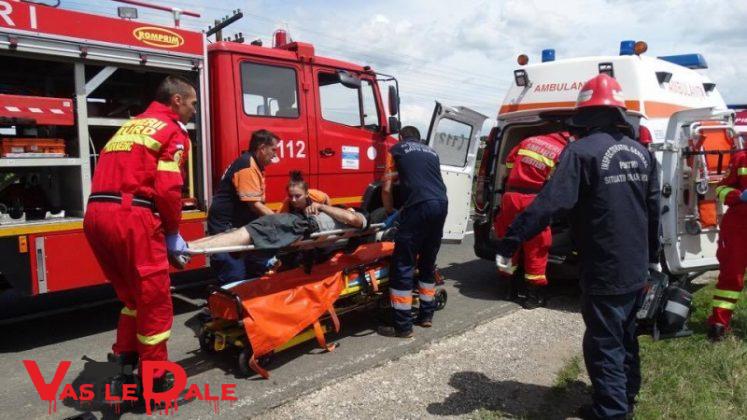 Potrivit primelor informații, un autoturism în care se aflau trei persoane și un copil s-a lovit de un autoturism de teren. În urma impactului ambele mașini au ajuns în șanț.