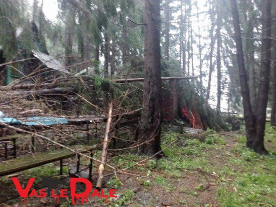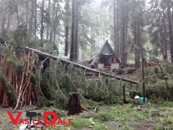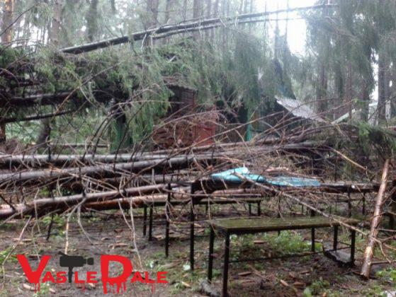 Din fericire nimeni nu a fost ranit, doar niste casute de vacanta au fost avariate dupa ce brazii au cazut peste ele.