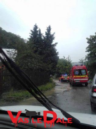 Pe drumul de intoarcere echipajul medical a ramas blocat intre aluviuni. Au intervenit pompierii militari.