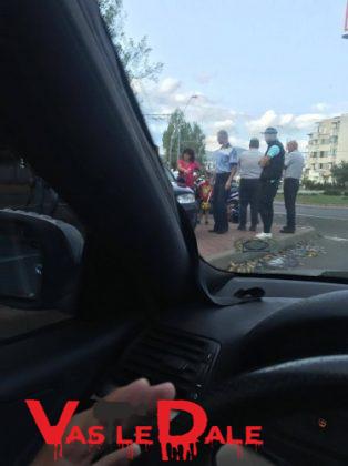 Din primele informații se pare că motociclistul a fost rănit după ce l-ar fi acroșat un autoturism VW. Acesta în încercarea de a-l evita a ajuns pe scuarul din sensul giratoriu.