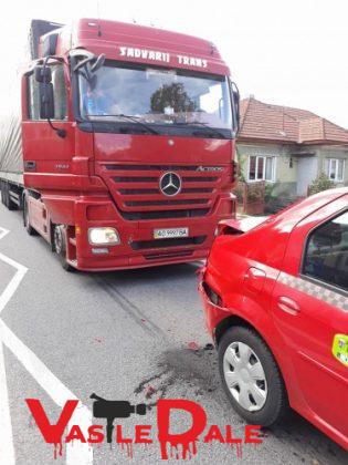 Un alt autoturism a oprit dar soferul ucrainean al unui TIR nu a mai reusit acest lucru iar impactul nu a mai putut fi evitat. A intrat in autoturism Dacia Logan, pe care l-a proiectat in celalalt autoturism.