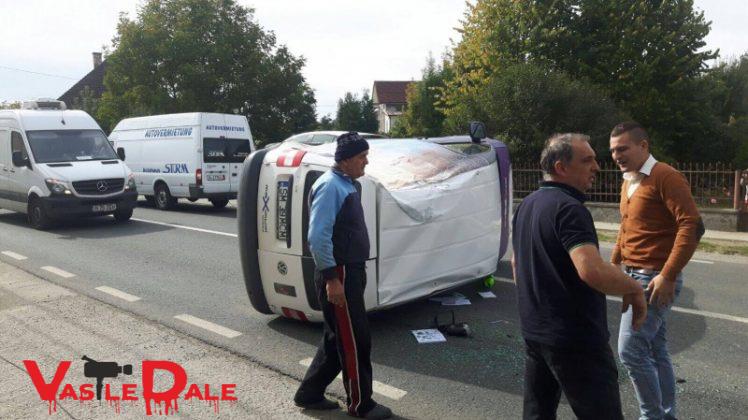 Impactul nu a mai putut fi evitat. In urma acestuia masina inmatriculata in Satu Mare s-a rasturnat pe partea carosabila. Din fericire nimeni nu a fost ranit, doar masinile au fost avariate.