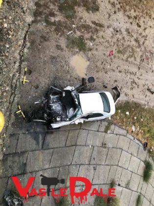 La locul accidentului, imaginile sunt înfiorătoare. Maşina tânărului de 25 de ani este distrusă complet, arătând de parcă ar fi fost călcată de un tanc.