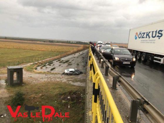 „Un bărbat,de 25 ani, din comuna Câmpuri, în timp ce conducea un autoturism pe DN 2 E 85, pe direcția Focşani – Bacău, pe fondul neadaptării vitezei la condițiile de drum a pierdut controlul volanului, intrând în coliziune cu balustrada podului din localitatea Bizighești, ajungând ulterior la baza acestuia. Nu sunt victime. Rezultat negativ la testarea cu aparatul etilotest”, au transmis reprezentanţii IPJ Vrancea. Imagini incredibil surprinse de un cititor din Borsa aflat in trafic.