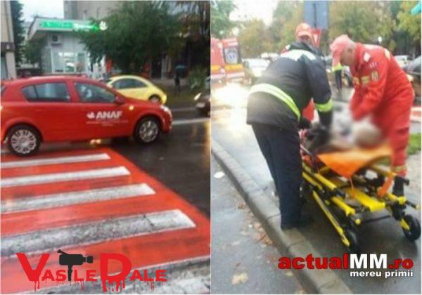 Din primele informatii se pare ca un pieton angajat in traversarea strazii pe trecerea pentru pietoni marcata si semnalizata corespunzator, a fost surprins si accidentat de un sofer care conducea un autoturism a ANAF-ului.