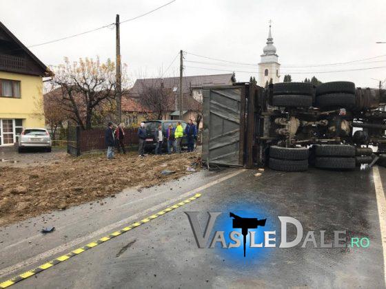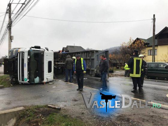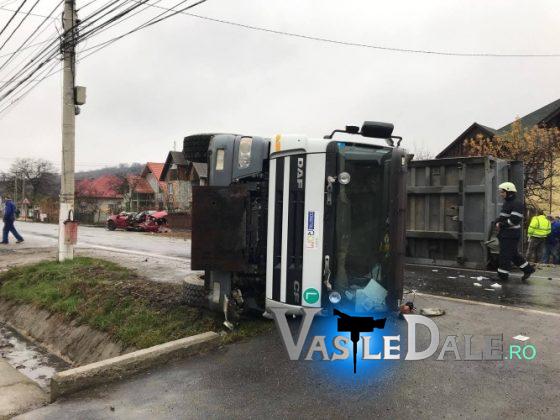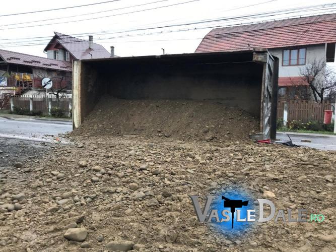 Din primele informatii in accident au fost implicate trei autovehicule: un autotren plin cu pietris, care s-a rasturnat dar si doua autoturisme.