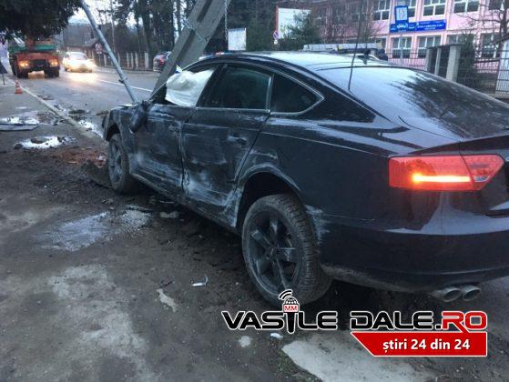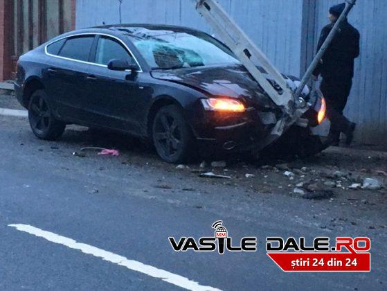 Din primele informatii se pare ca soferul unui autoturism de lux inmatriculat in Germania din cauza vitezei excesive a pierdut controlul volanului, a patruns pe contrasens unde s-a izbit frontal de un stalp din beton de la reteaua de energie electrica.