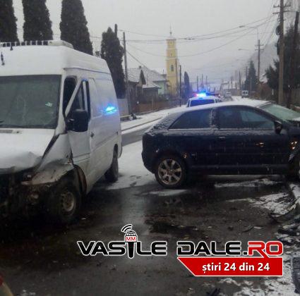 Un şofer a pierdut controlul volanului, a intrat în derapaj şi s-a izbit de un autoturism. În urma impactului două persoane din autoturism au suferit leziuni corporale.