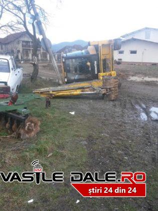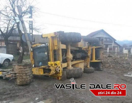 Utilajul s-a răsturnat, dar şoferul a fugit de la locul accidentului. La faţa locului s-au deplasat poliţiştii din cadrul Biroului Poliţie Transporturi Maramureş pentru a-l depista de şofer. Locomotiva trenului este de asemenea avariată.