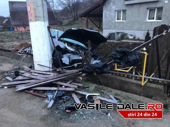 Din cauza neadaptarii vitezei la conditiile de drum soferul unui bolid de lux a pierdut controlul volanului, a trecut pe contrasens unde a distrus o conducta de gaz, gardul unui imobil, dar si un stalp din beton de la reteaua electrica.
