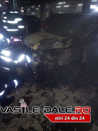 La faţa locului intervin trei echipaje de pompieri. Din primele informaţii, o maşină parcată, nu se ştie din ce motive, a luat foc.