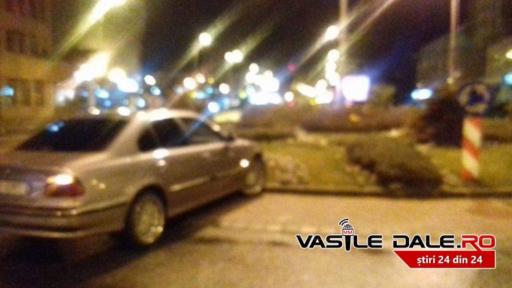Din primele informatii se pare ca vehiculul a fost blocat abia dupa ce soferul acestuia s-ar fi urcat pe sensul giratoriu.