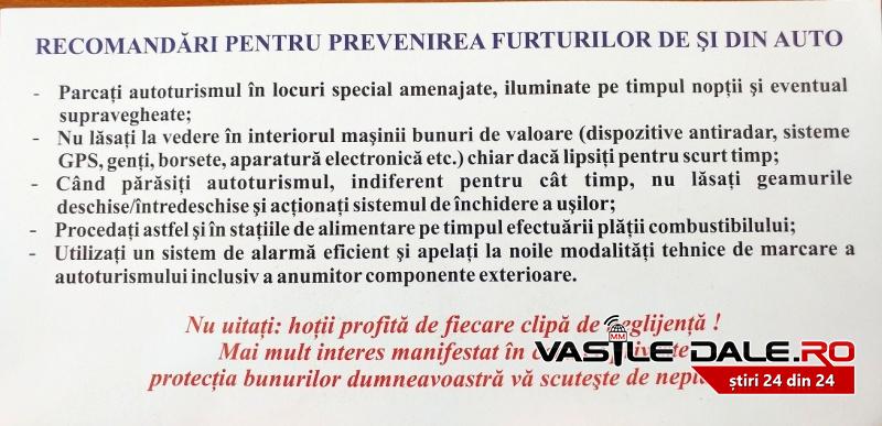- Când părăsiţi autoturismul verificaţi întotdeauna dacă aţi închis portierele! De asemenea închideţi bine şi geamurile, indiferent că sunteţi în parcarea unui supermarket sau în parcarea din faţa blocului!