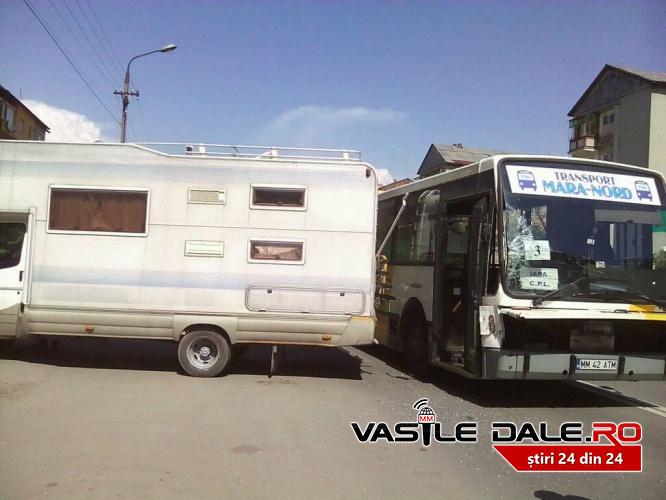 Un accident de circulatie s-a produs pe strada Unirii din municipiul Sighetu Marmatiei. Din primele informatii se pare ca in eveniment au fost implicate doua vehicule: un vehicul tip rulota inmatriculat in Italia si un autobuz de transport calatori.