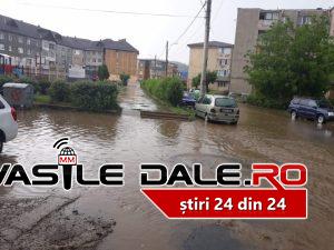S-a intervenit cu două autospeciale şi două motopompe, fiind inundate trei curţi şi mai multe subsoluri.