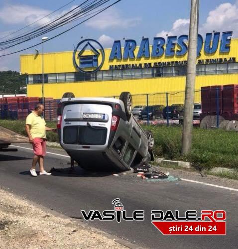 Şoferul unui autoturism Dacia, din cauza neatenţiei, a lovit scuarul de pe mijlocul drumului şi s-a răsturnat pe plafon. El s-a ales cu răni uşoare şi cu avarierea maşinii.