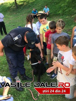 De la întâlnirea cu copiii nu puteau lipsi câinii polițiști Vis, Teba și Snow care au profitat de o nouă ocazie de a-şi prezenta abilităţile de prindere a infractorilor. Spectacolul oferit de câinii de urmă, sub supravegherea conductorilor din cadrul Serviciului de Ordine Publică, a încheiat activitatea într-o notă și mai veselă.