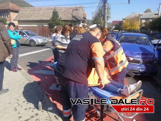 În urma accidentului a rezultat accidentarea unei femei, care acuză dureri abdominale şi se pare că s-a ales cu o fractura.