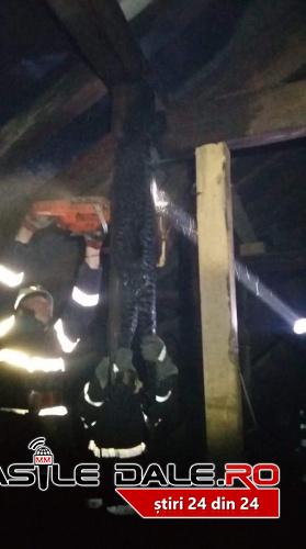 O grindă de lemn din acoperișul unui apartament a luat foc.
