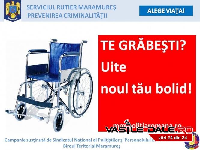 Nerespectarea regimului legal de viteză şi neadaptarea vitezei la condiţiile de drum reprezintă principalele cauze ale producerii accidentelor de circulaţie grave pe raza judeţului. Dacă pietonii sunt neputincioşi în faţa unui autoturism condus cu viteză, riscurile sunt majore şi pentru conducătorul auto sau pasagerii care se află într-un autoturism ce rulează cu viteză. Dincolo de sfaturile oferite de poliţişti, fiecare şofer stabileşte limitele vitezometrului!
