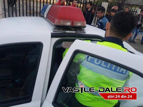 La scurt timp, la fața locului a sosit un echipaj de Poliție pentru a verifica cele relatate. În momentul în care polițiștii au bătut la ușa scandalagiului, acesta i-a atacat pe polițiști cu un vătrai, rănindu-l ușor pe unul dintre aceștia.
