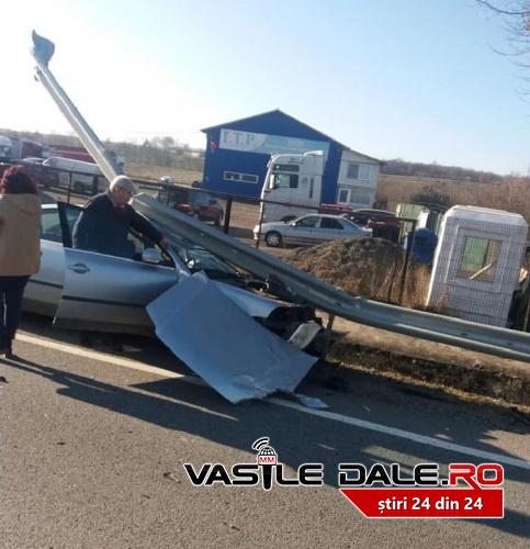 Cu toate ca autoturismul VW nu trecuse de axul drumului, celalalt sofer a acrosat oglinda acestuia iar apoi a pierdut controlul izbindu-se violent in parapetul metalic de protectie din stanga directiei de mers.