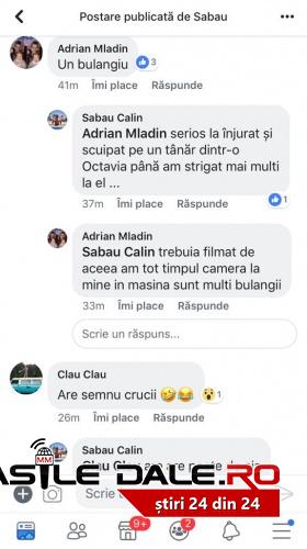 „Cum sa fie asa nesimtit si sa coboare din masina, sa scuipe un alt sofer care era incadrat regulamentar dar mergea inainte si el, din spate, vira la dreapta… Mai uitati-va pe unde circulati… se mai si ascunde in parcare… Ce oameni!…” este mesajul lui Sabau Calin.
