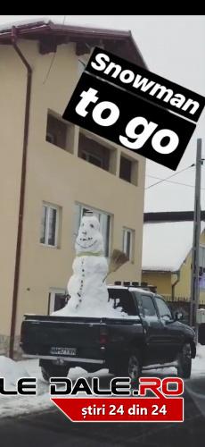 Zis si facut! El a ridicat un om de zapada direct in bena masinii de teren, un fel de „Snowman to go”.