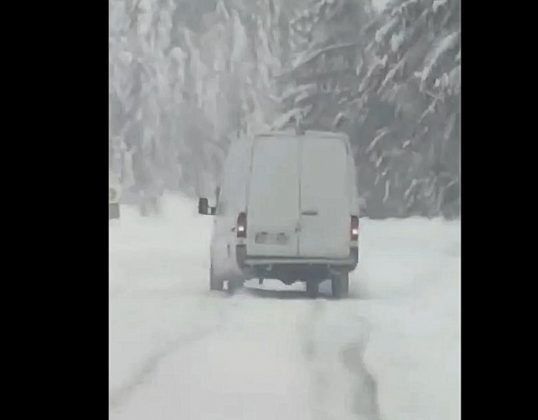 Alții – cazul șoferului unui autoutilitare – și-a forțat la maxim motorul dubiței cu tracțiune pe spate în încercarea de a urca muntele. Imaginile video sunt elocvente.
