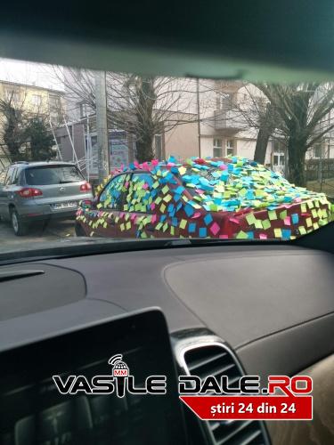 Copiii au scris pe bileţele zeci de mesaje de apreciere pentru profesorul lor şi le-au lipit pe maşina acestuia.