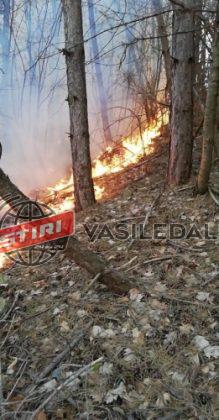 După ce alaltăieri pompierii şi voluntarii s-au luptat să stingă incendiul de vegetaţie uscată de la marginea pădurii de la Hovrila, astăzi focul a intrat în pădurea de brazi dintre Hovrila şi Buciumi.