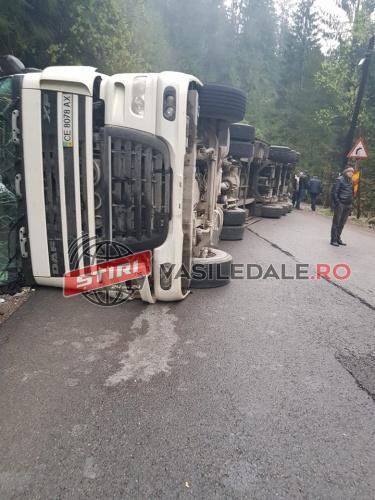 Potrivit informaţiilor transmise de ISU Maramureş, un camion s-a răsturnat la intrarea în Complexul tursitic din Borşa. Nu s-au înregistrat victime.