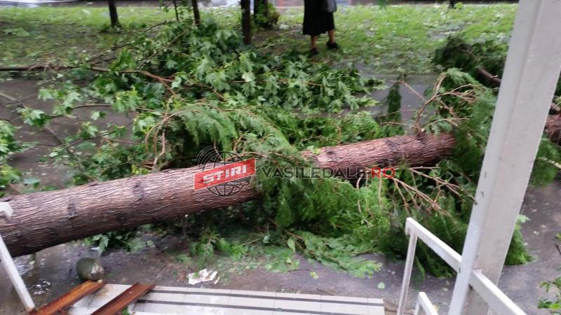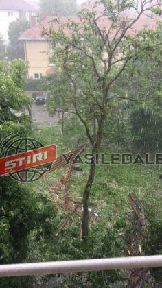 În zona Vivo din Baia Mare, vijelia a smuls un copac cu rădăcină cu tot (foto).
