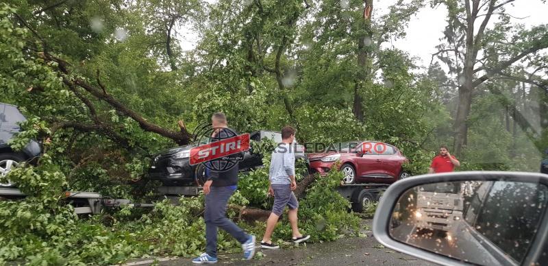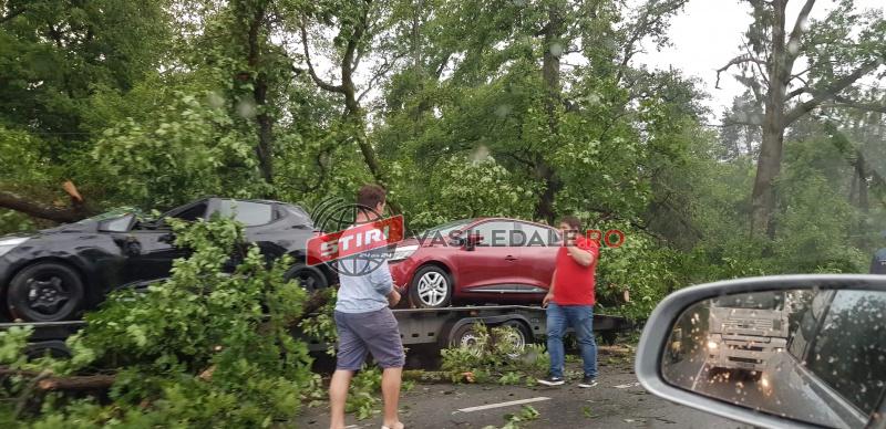 Un copac s-a prăbuşit pe DN 1 C în zona ”Doua Veverite”. Se circula pe un singur sens. S-au deplasat pentru interventie la fata locului angajati de la sectia de drumuri nationale Baia Mare si CLSU Satulung (foto, video). Copacul a cazut peste o platforma ce transporta 3 masini.
