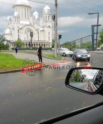 Ne-au parvenit imagini surprinse la intersecţia bulevardelor Independenţei cu Republicii, în zona RFN, unde un tânăr dezorientat, dezechilibrat încearcă să treacă strada. Din mişcările sale este clar că tânărul consumase stupefiante.