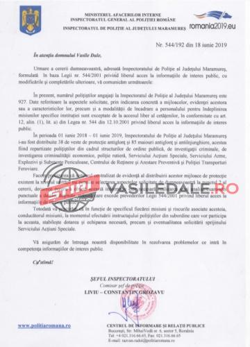 Iată răspunsul IPJ Maramureș: ”În atenţia domnului Vasile Dale,