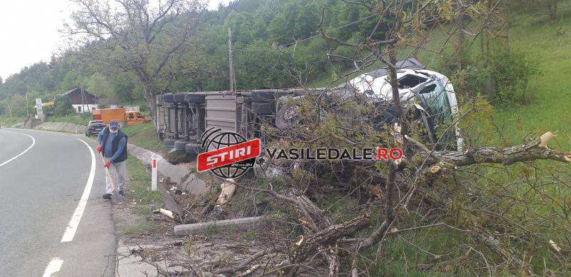 Polițiștii ajunși la fața locului au constatat că un bărbat vârstă de 46 de ani din Turda județul Cluj în timp ce conducea o autoutilitara care tracta o semiremorcă dinspre Dej spre Baia Mare într-o curbă, a intrat pe contrasens, a părăsit partea carosabila fără să franeze, a distrus trei indicatoare rutiere și a intrat în coliziune frontala cu un copac.
