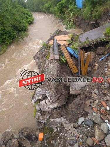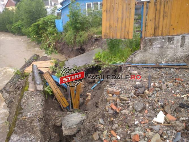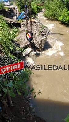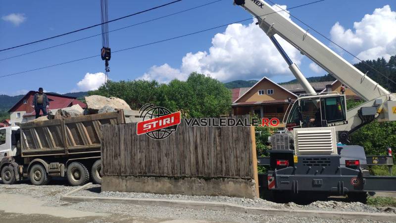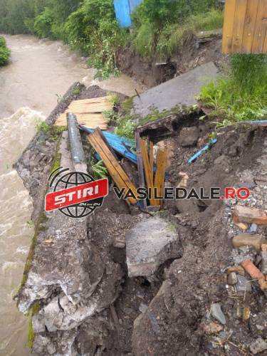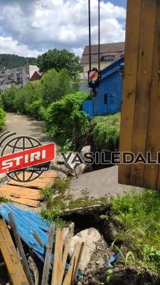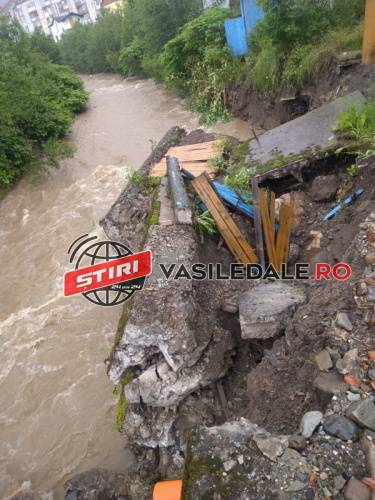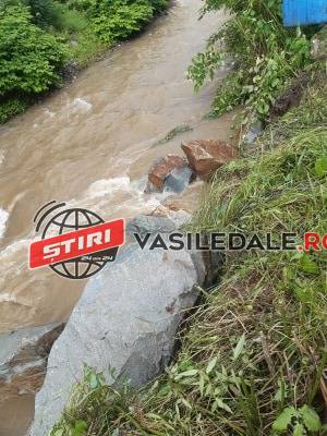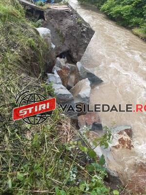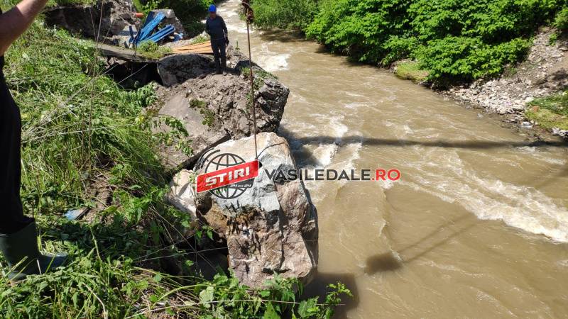 În cursul zilei de joi s-a intervenit cu blocuri de piatră în zona apărării de mal care s-a surpat ieri.