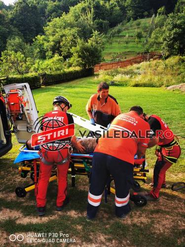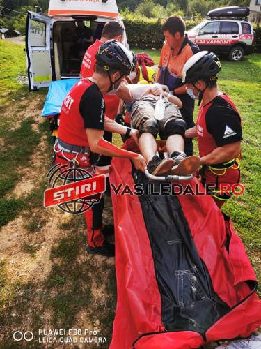 Dupa o coborare dificila accidentatul a fost predat ambulantei si se afla in drum spre unitatea medicală pentru investigații complexe.