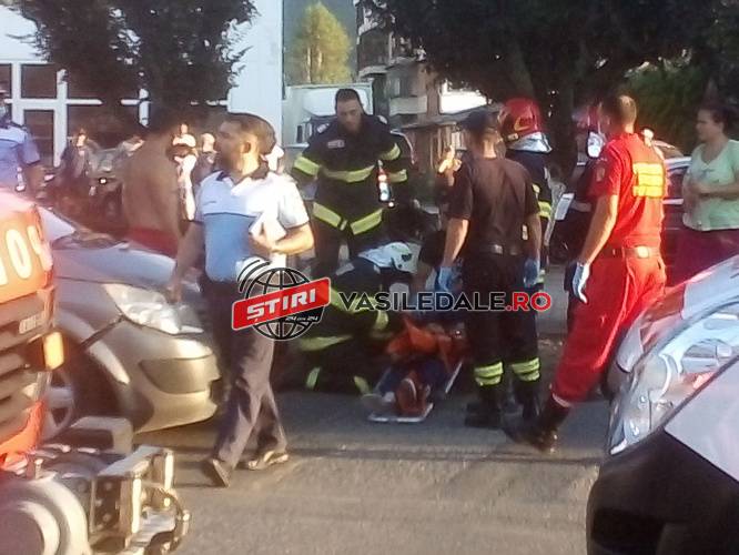 Un autovehicul a lovit trei pietoni, 2 adulti si un copil. Din fericire sunt constienti, având suspiciune de fracturi.