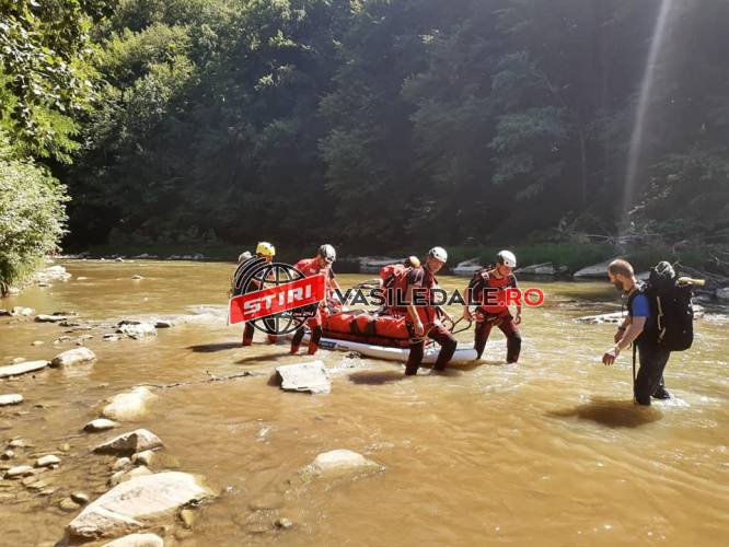 In acest moment salvatorii montani au stabilizat accidentatul si il transporta pe râu datorita terenului impracticabil si pe urma pe unde le permite iesirea din raul Lăpuș pe poteca ingusta pana la locul intalnirii cu echipajul SMURD.