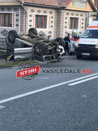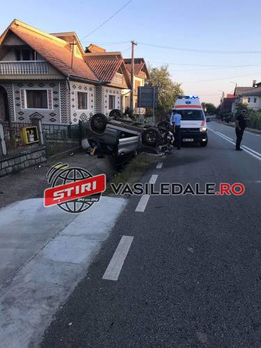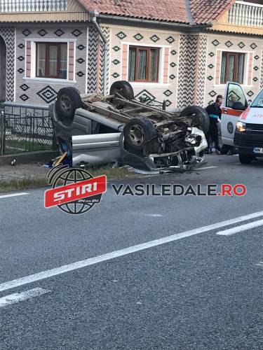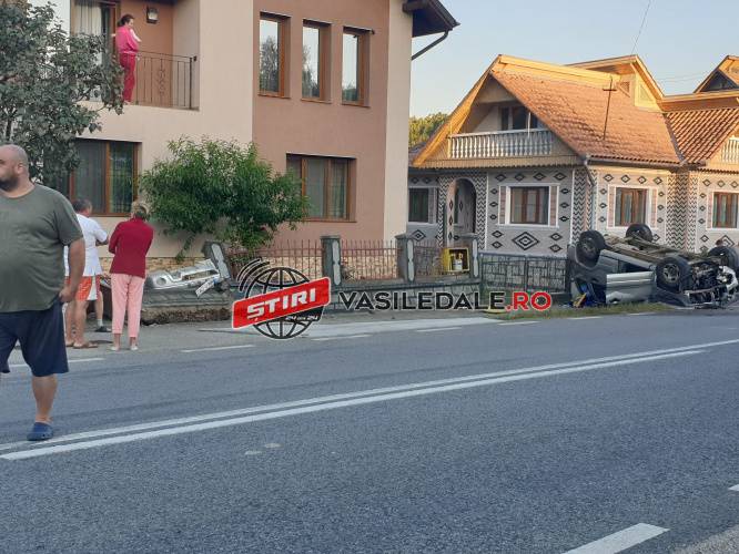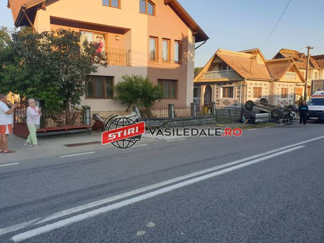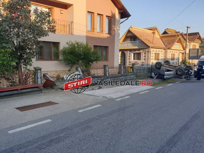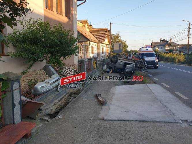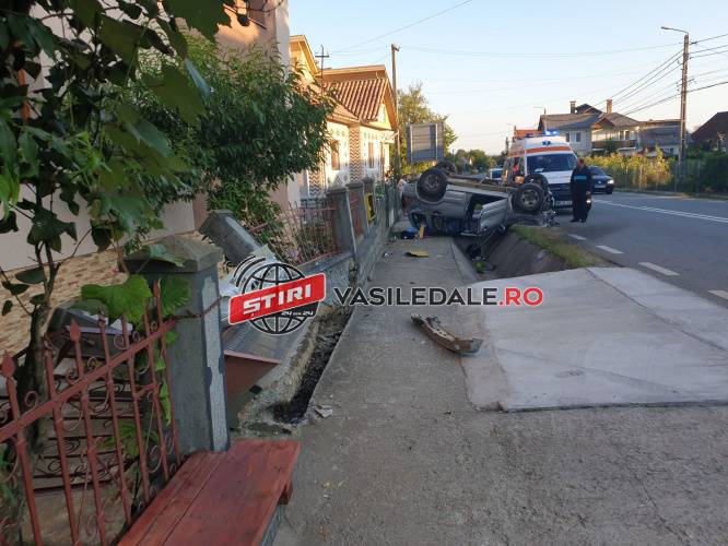 Şoferul unei maşini a făcut o manevră greşită, a ieşit de pe carosabil şi s-a răsturnat pe plafon distrugând un gard. Au rezultat două victime, ambele conştiente, care au ieșit din autoturism.