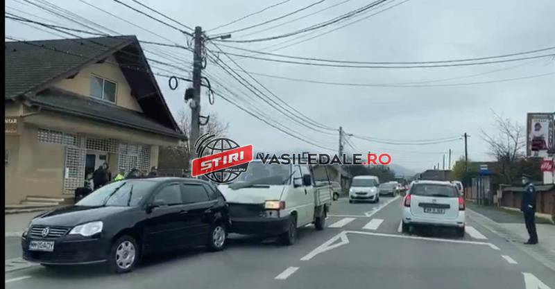 În spatele său, șoferul unei autoutilitare nu a păstrat distanța de siguranță și l-a izbit în partea din spate a mașinii.